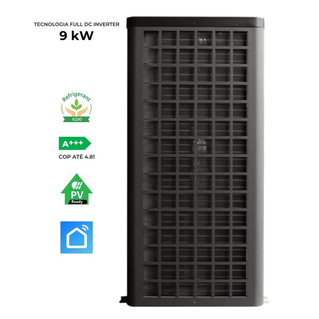 Devido ao design monobloco, a bomba de calor € economicamente rentável, economiza espaço e 6 silenciosa para funcionar no exterior.