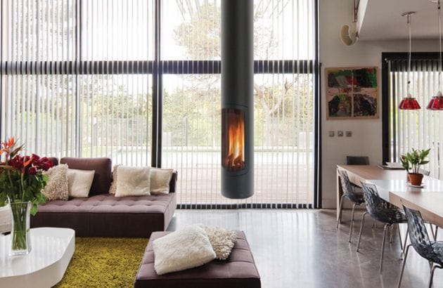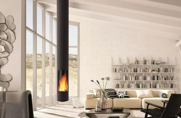 Lareira suspensa, fixa ou pivotante